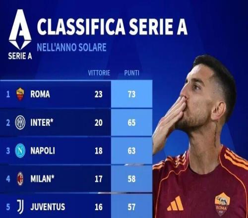 米蘭圈德國轉會市場統計了今年意甲球隊拿到的積分,列出2025年意甲積分榜單,米蘭58分。2025年意甲積分榜:羅馬——73國米——65那不勒斯——63米蘭——58尤文——57博洛尼亞——